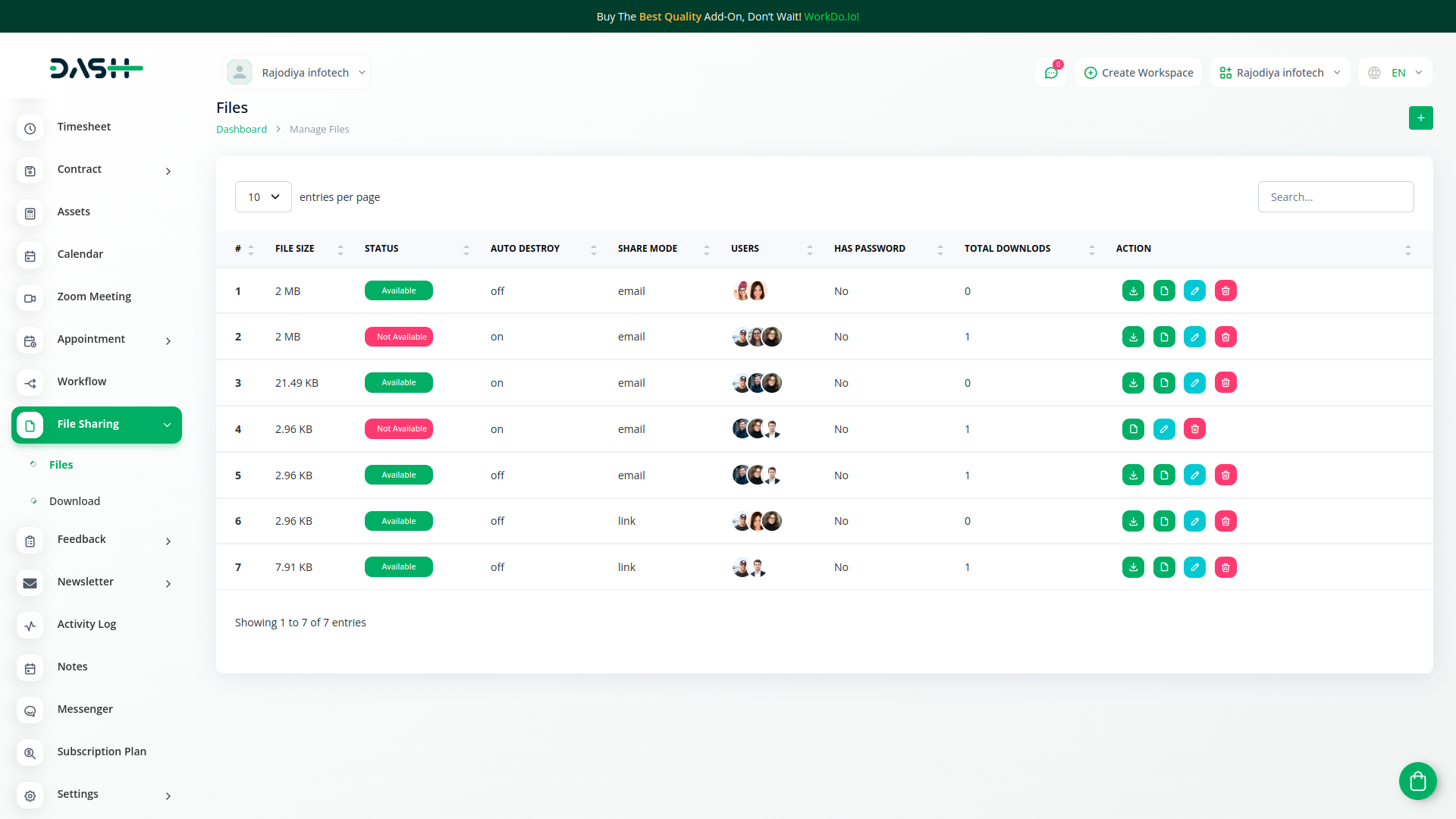 The purpose of the file sharing feature is to facilitate the exchange and distribution of digital files between users or groups of users. It enables seamless collaboration, efficient communication and easy access to shared content. In it you can also select multiple users, add image, pdf, txt files etc and you can also share files through mail or link.