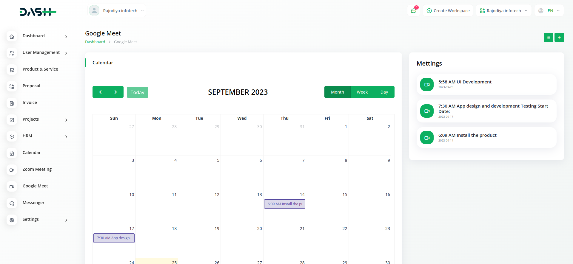 Discover the seamless collaboration of Workdo-Dash, where productivity meets innovation. Integrated with Google Meet, our platform transforms teamwork, allowing real-time collaboration and efficient meetings. Elevate your productivity and streamline your work processes with Workdo-Dash – where work meets innovation effortlessly.