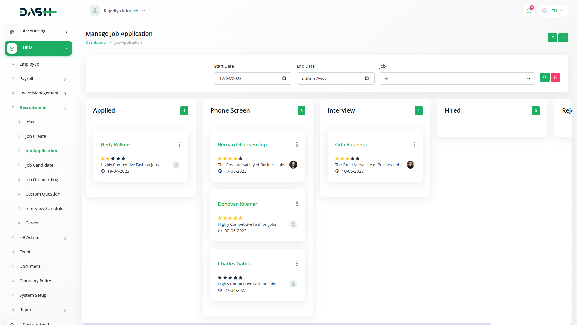 Speed up your hiring process. Use built-in hiring features to create and manage new job openings and fill your open positions faster.Depending on Hrm Module.